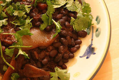 Then, back to seasoning the beans, with the chili powder, a good handful – I’m guessing three tablespoons at least, and a little cinnamon, salt and pepper. When it was all done, I tasted again, and adjusted the seasonings, knowing that as the beans cooled they would start to take on a richer, more complex flavor. It’s always difficult to know what something will really taste like when it’s boiling hot – the tongue can’t really interpret what’s going on properly. But let it cool a bit, and the flavors really start to come through.